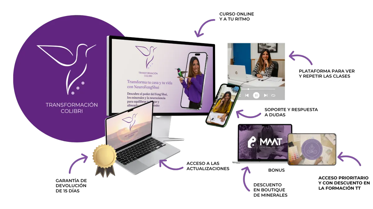 La Formación Transformación Colibrí es la puerta de entrada al método MAAT: un recorrido práctico y profundo para transformar tu vida a través de tu casa y comprender cómo la energía del entorno refleja tu interior. Aprenderás a liberar bloqueos, elevar la energía de tu hogar y reconectar con tu propósito. Es el inicio de una vida más ligera y coherente.